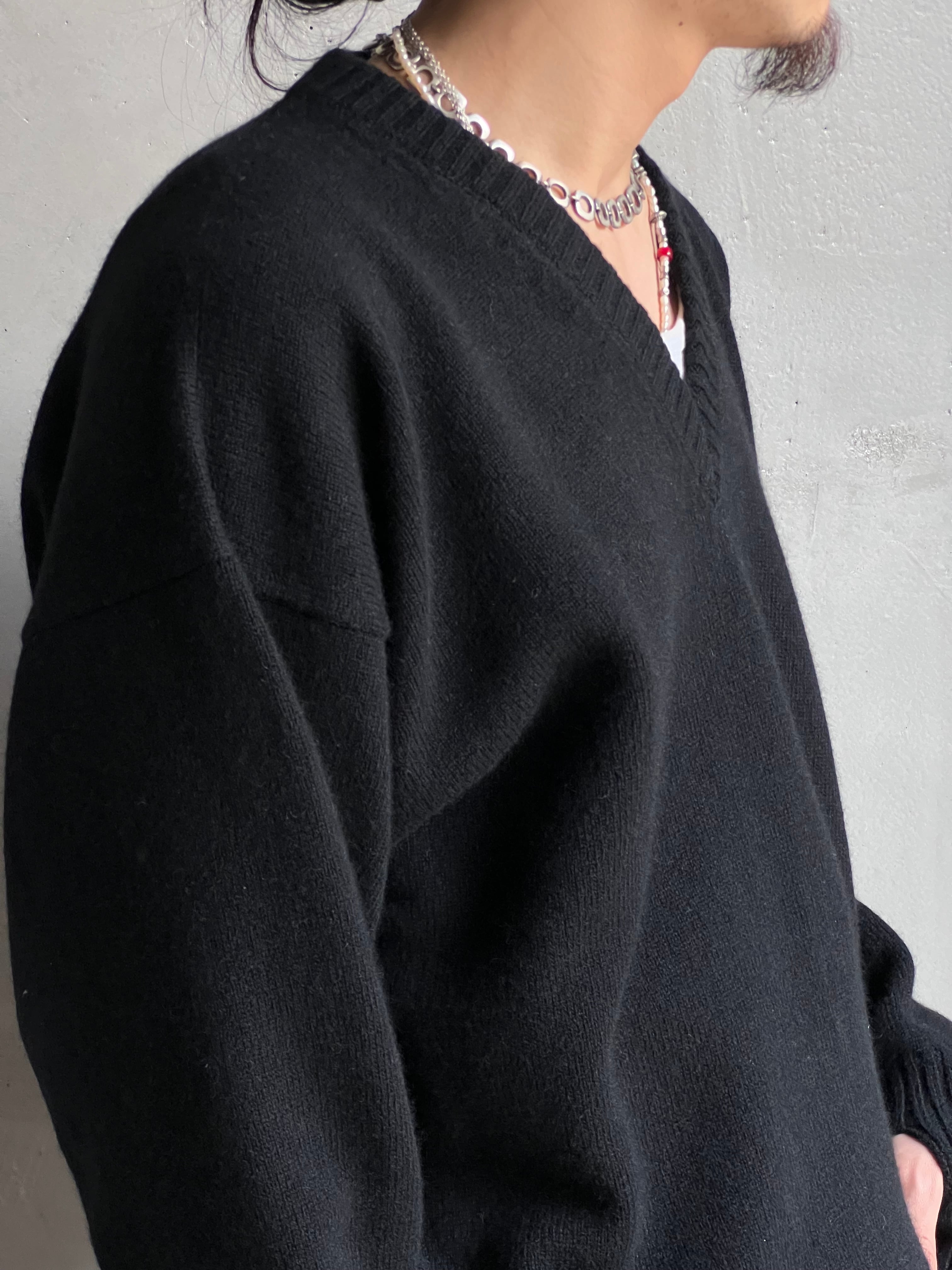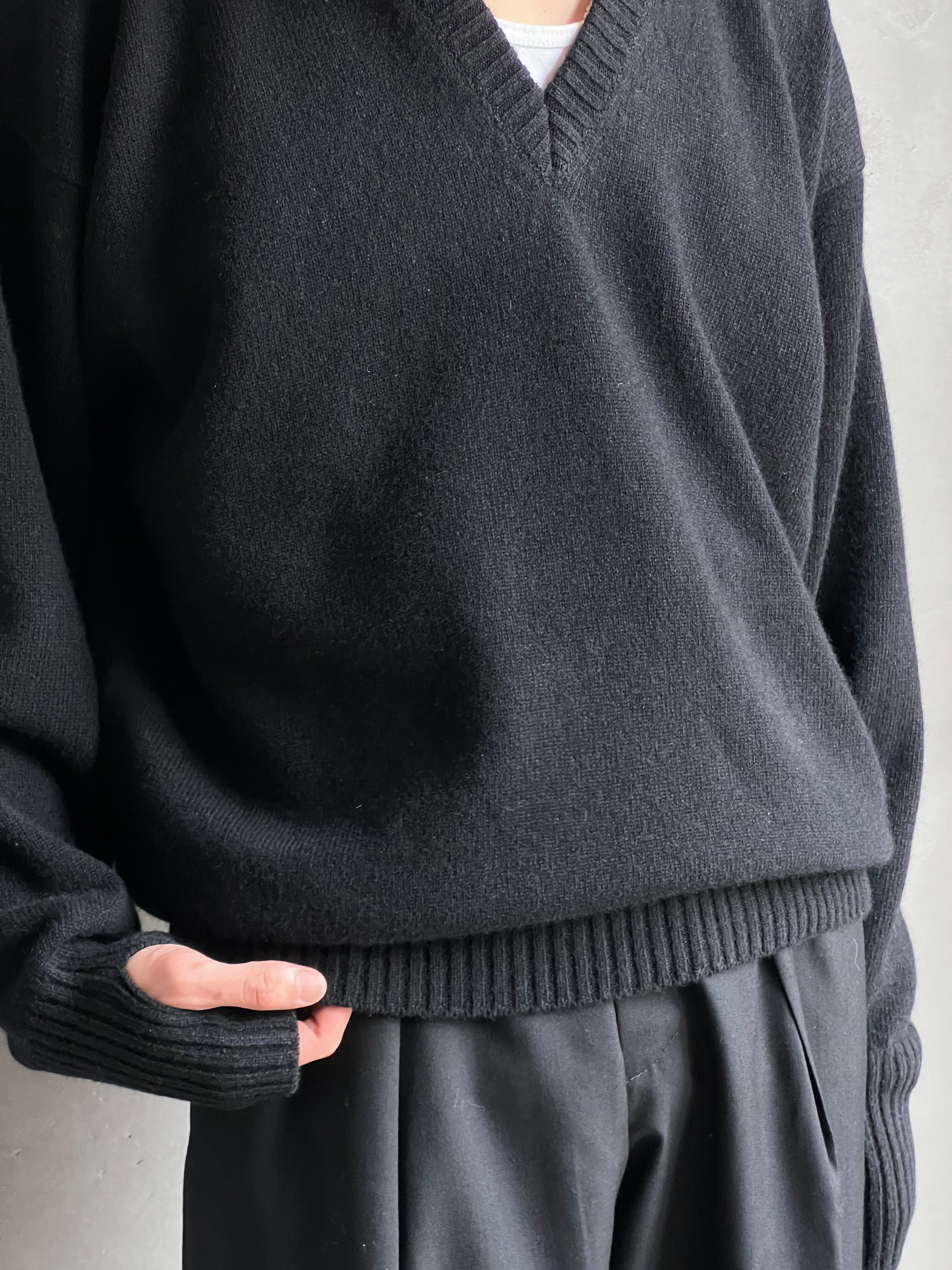 GEN IZAWA / Wool cashmere V neck sweater (black)
